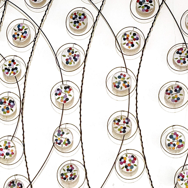 Cette pièce est unique mais à votre disposition pour toute commande personnalisée (choix du dessin sur les boutons, couleurs…) . ©Ancramillage – entièrement réalisé à la main.