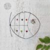 Petit poisson deviendra grand… réalisé en fil de fer recuit parsemé de 6 petites nacres, d’un bouton en bois peint pour son oeil. Il trouvera sa place sur tous les murs de la maison.